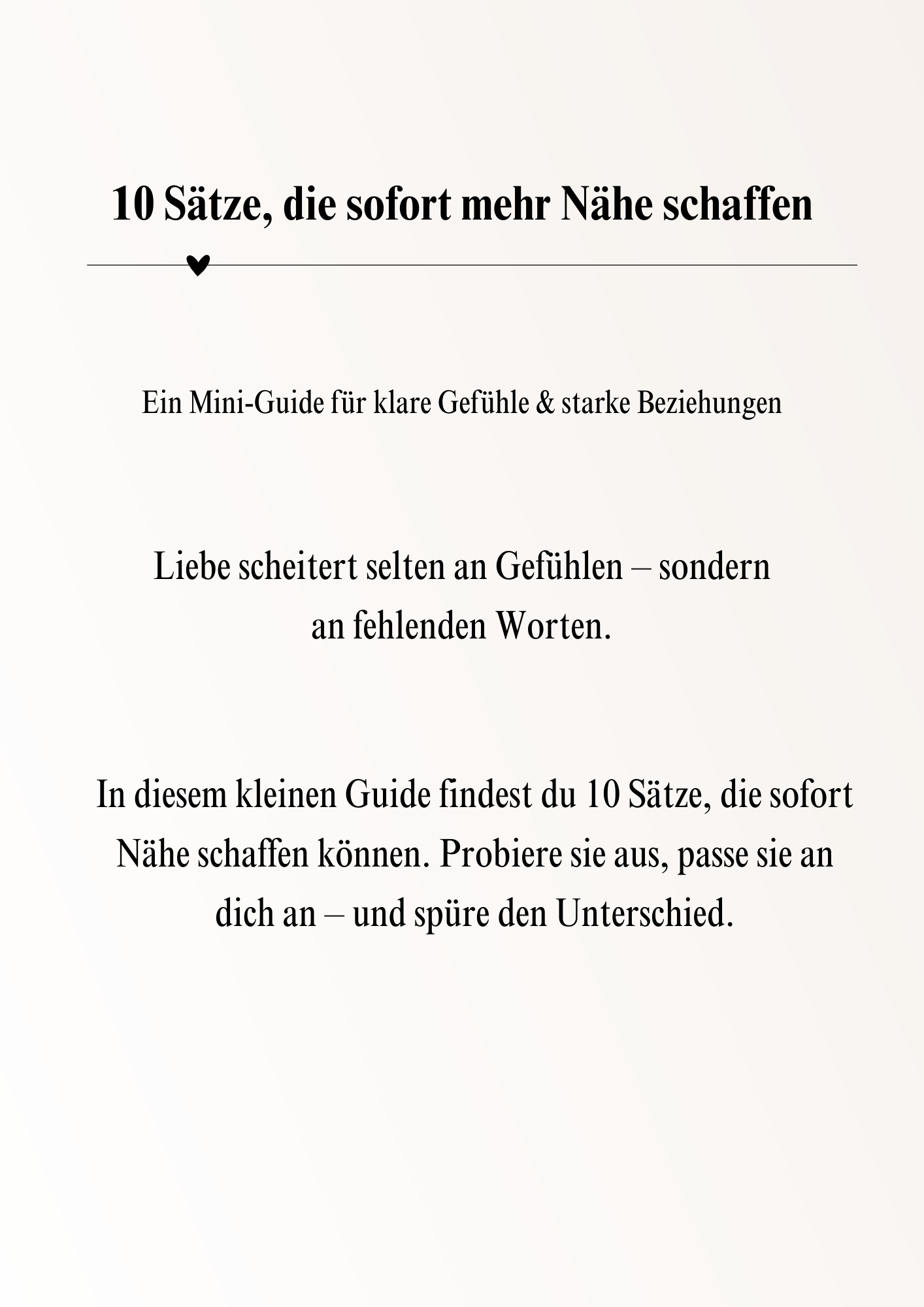 10 Sätze die sofort mehr Nähe schaffen ist ein kostenloses Mini E Book für Menschen, die sich mehr Nähe wünschen und dabei ehrlich sowie liebevoll mit ihrem Partner umgehen möchten.